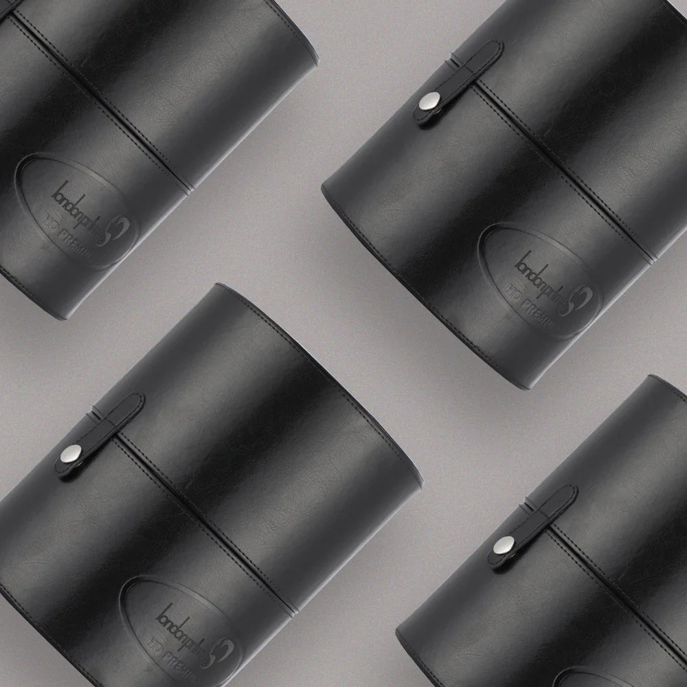 Makeup brush holder cylinder shaped XXL made of high grade quality PU leather, amazing professional case to store your makeup brushes.
