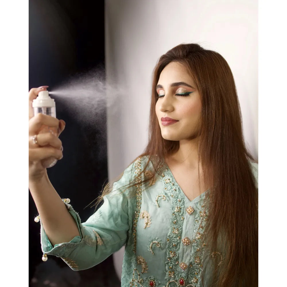 HOW TO USE : Hold the makeup fixer bottle at arms length and spritz it over the face to keep makeup in place for a prolonged period of time.