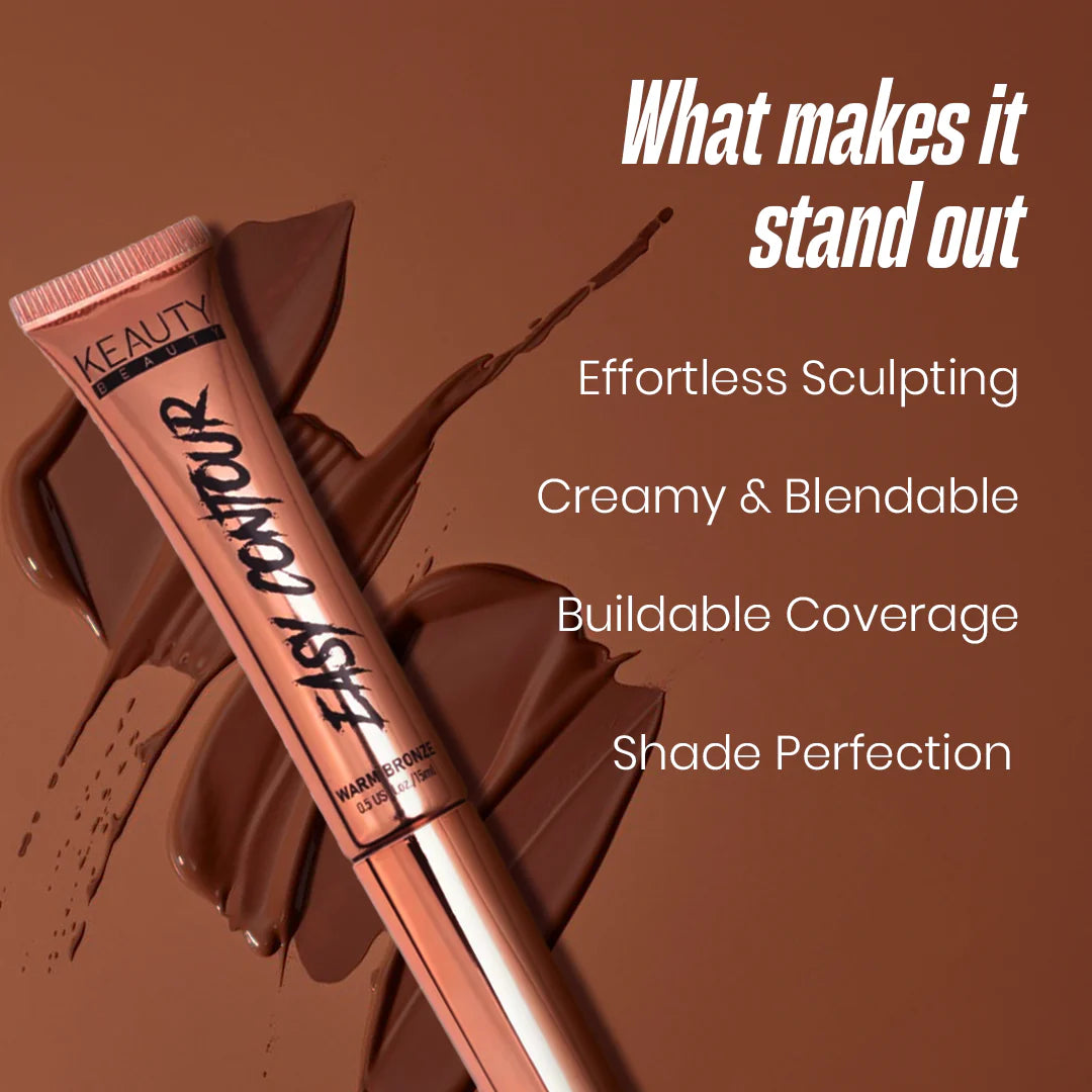 Keauty Beauty Easy Contour in Warm Bronze and Deep Bronze delivers a natural, sculpted look with its creamy, blendable formula. Perfect for enhancing features, it provides seamless, buildable coverage.