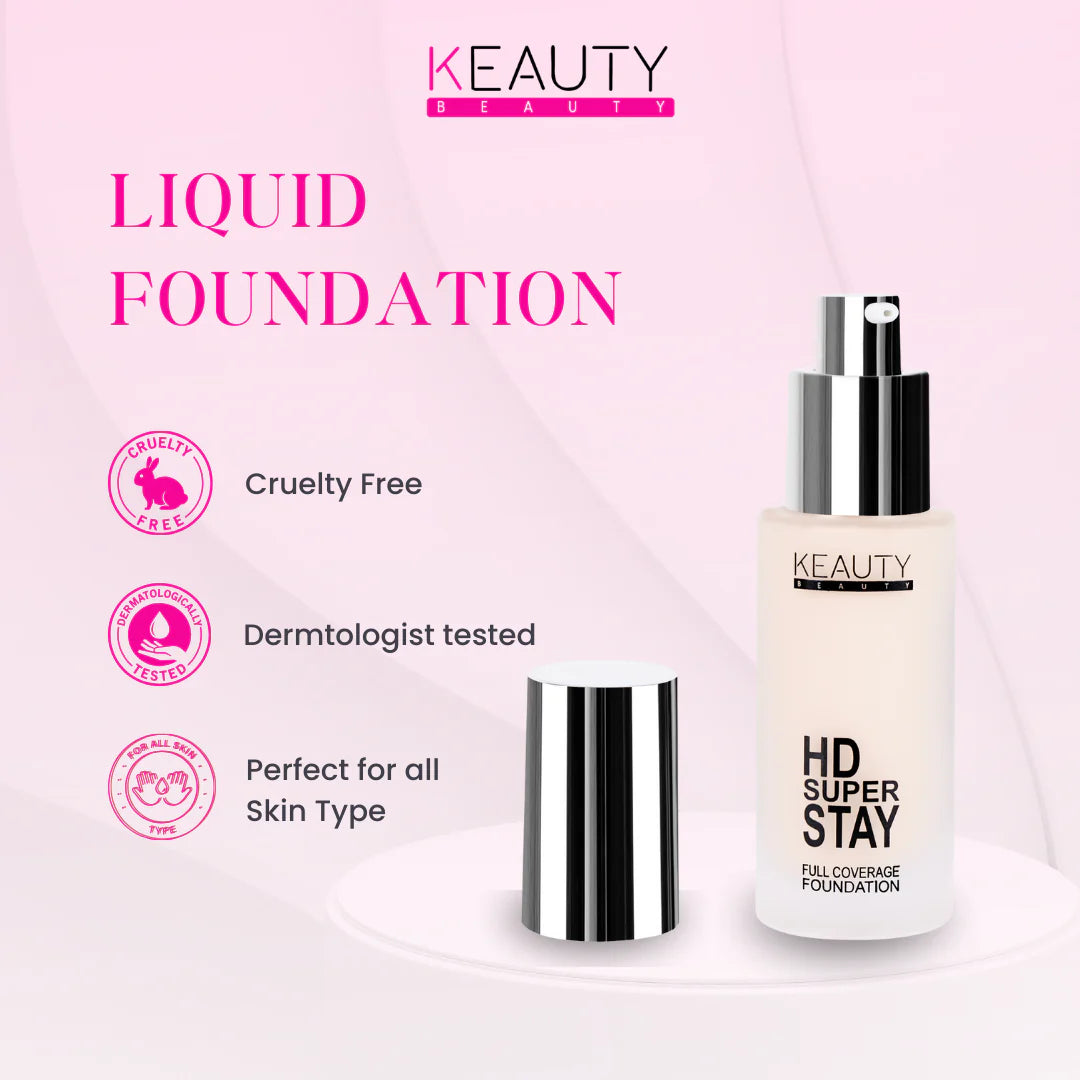 HD Liquid Foundation is a high coverage foundation that perfectly blends into your skin and delivers a smooth and matte finish look. Cover acne, wrinkles, and blemishes with this HD full coverage foundation which controls excess oil, gives smooth skin, enriched with the goodness and long-wearing coverage. With the super comfy formula you can have the look you want.