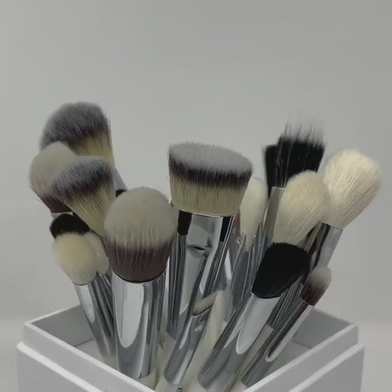 Included in this set are 16 eye shadow brushes. The brushes are synthetic and feature a flat, rectangular shape. They are made with bristles that are tightly packed, which is good for blending and application. The set includes a large and small shadow brush, which can be used to apply both crease and brow colors. The brushes are easy to clean with soap and water, and they are great for traveling.