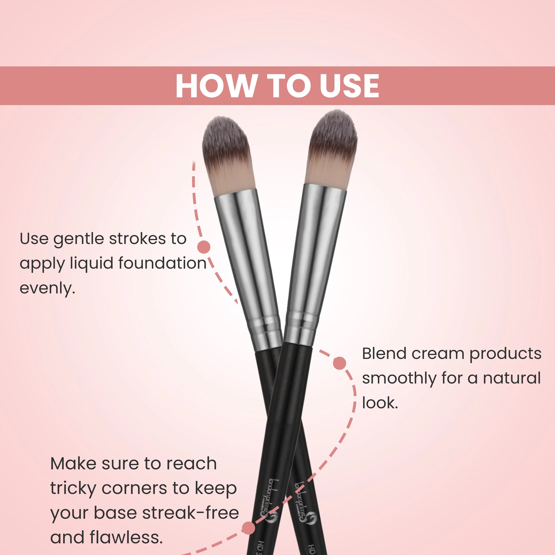 A small round shaped Foundation brush is made of soft Taklon.This brush is perfect for applying liquid or cream products. It blends smooothly and evenly with no streaking.