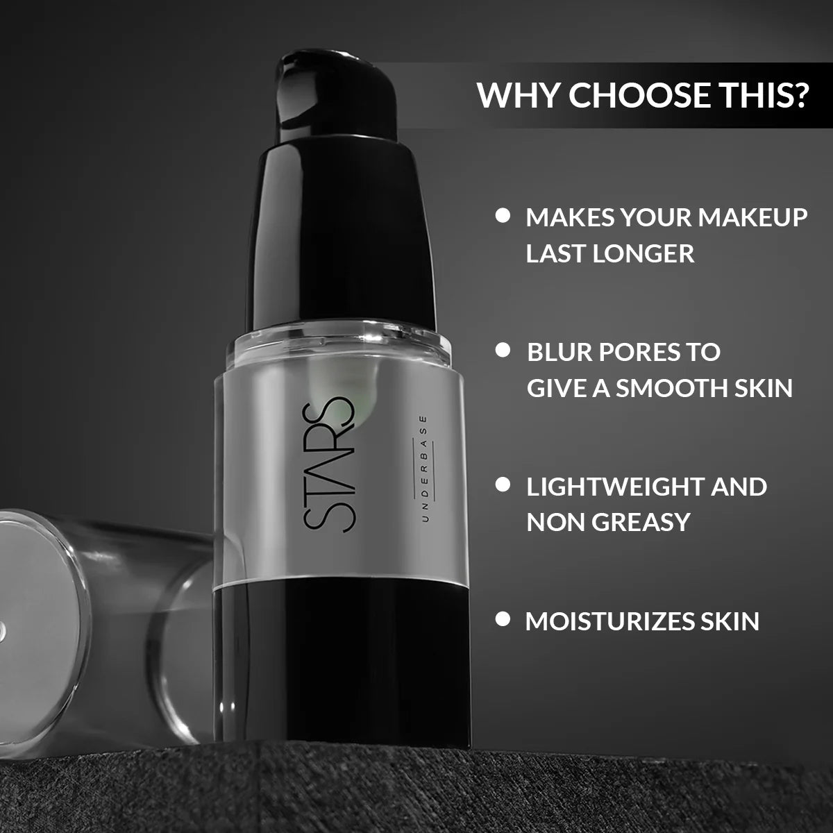 Stars Underbase Primer creates the perfect canvas to allow powders, Bronzers, And foundations blend onto the skin seamlessly. It also acts as an excellent T-zone mattifier and colour stays true and in place all day.