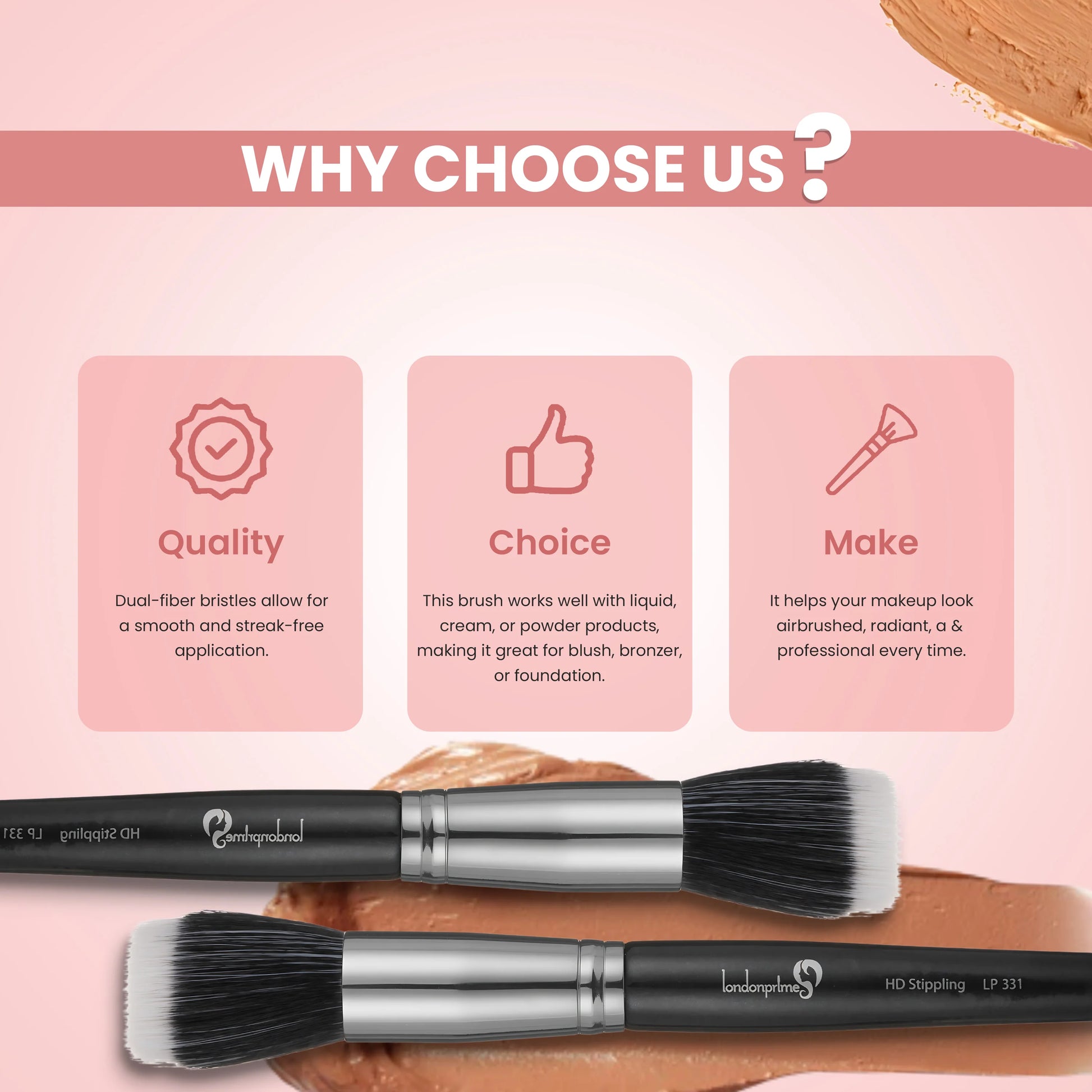 London Prime Cosmetics HD Stippling Brush is very thick at the bottom and it thins as we move to the top and creates a very light texture. It can be used for cream or liquid based products also it spreads very nicely and doesn’t get clogged up in the brush which is the most admirable quality of this brush. It gives a perfect airbrush finish while you buff it until you get a professional look, it can be used to apply foundation, highlighter, blush and bronzer.